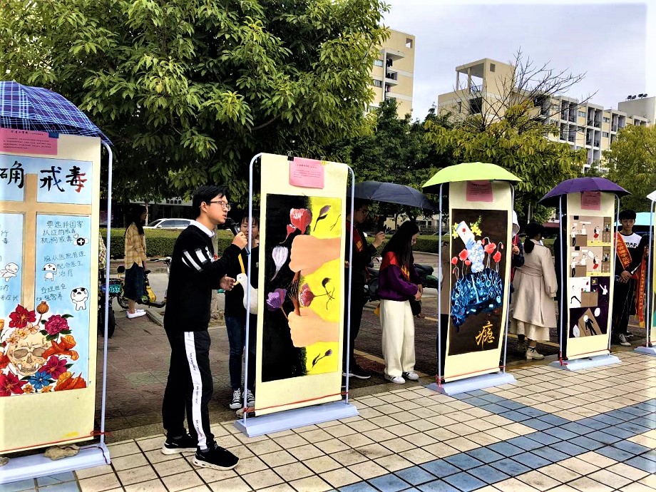 红十字会,组织全校各学院积极开展在校大学生“禁毒防艾”教育“五个一”活动(暨“上好一堂毒品预防教育课”、“观看一部防艾宣教视频”、“召开一次禁毒防艾主题班会”、“开展一次防艾禁毒知识竞赛”、“举办一次禁毒防艾知识画卷大赛”)。