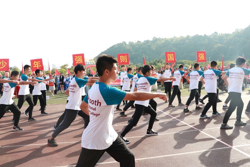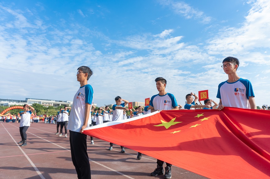 方阵身着蓝白色院服,自信地为学校送上真挚的“见面礼”。中外交融的阵容,寓意着我们花开福州、走向世界的初心;刚劲有力的军体拳,彰显出梅努斯学子昂扬的斗志,他们欲在赛场上挥洒热血,展现青春的激情澎湃。