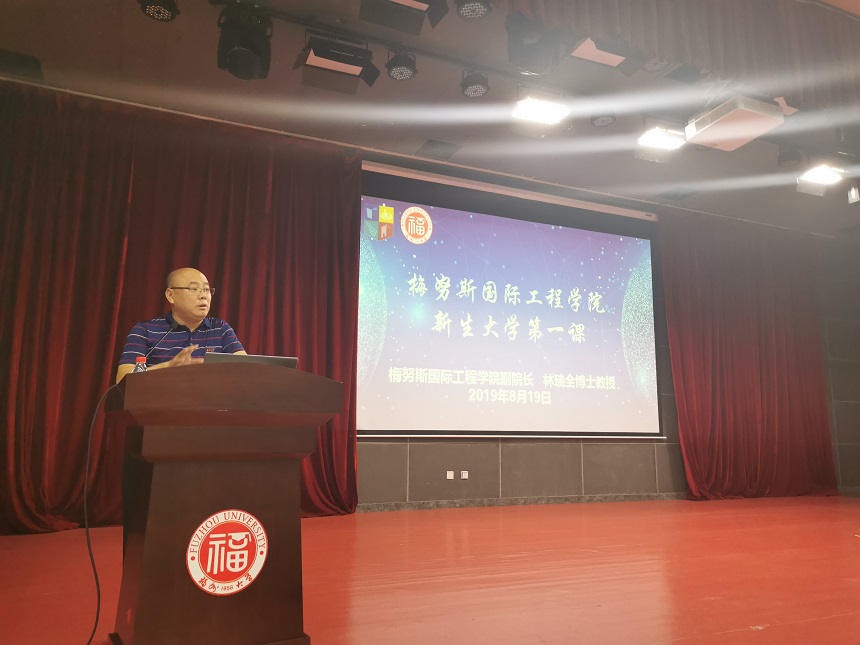 首先,林瑞全副院长带领新生们简要回顾了学院的创建历程,认为学院作为福建省首家“双注册学籍、双授学士学位”的中外合作办学机构,其创办既符合中国高等教育产业发展需求,同时有助于培养国际化视野人才,自筹建之初便得到各方的高度关注。