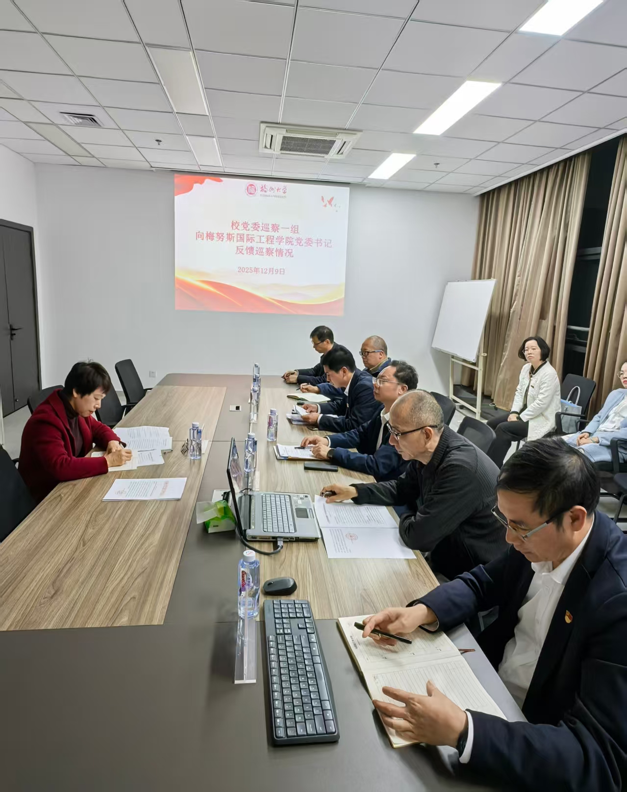 翁穗平同志代表学院党委表态,巡察组反馈的问题客观中肯、切中要害,提出的意见具有很强针对性和指导性。学院党委将切实把巡察整改作为重要政治任务,坚决扛起整改责任,以高度的政治自觉和行动自觉全面抓好整改落实。针对反馈问题,学院将及时专题研究,制定整改方案,建立问题清单、任务清单、责任清单,实行台账管理、对账销号,确保整改到位、见到实效。学院将以巡察整改为契机,坚持举一反三、标本兼治,把巡察整改与落实学院“十五五”规划、落实全面从严治党要求、推动党建与业务双融并促、深化教育教学改革,提升国际化人才培养质量、完善中外双方协同育人机制、提升学院内部治理体系和治理能力等紧密结合,以整改促党建、以整改强作风、以整改提效能,切实把巡察成果转化为推动学院内涵发展、特色发展的强大动力,以高质量发展的新成效在服务学校“双一流”建设中做出新贡献。