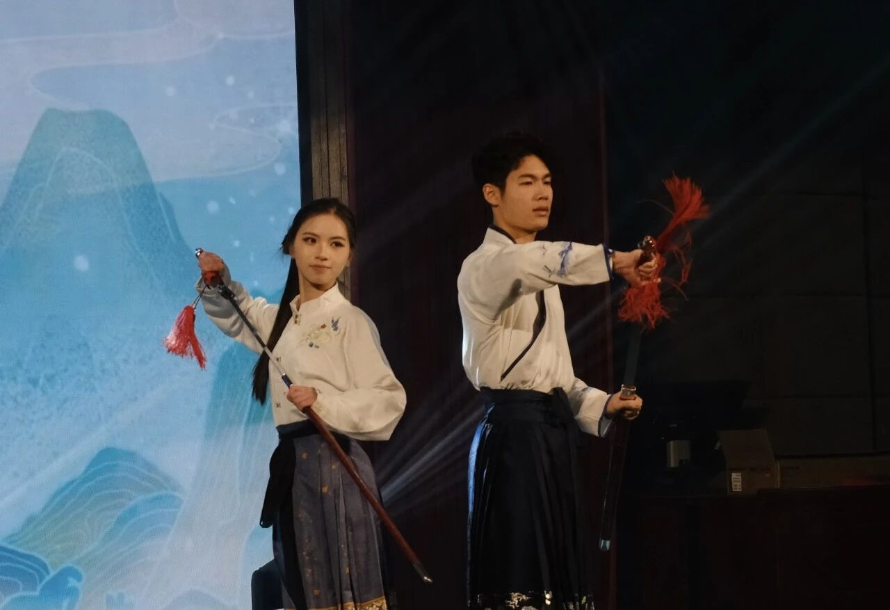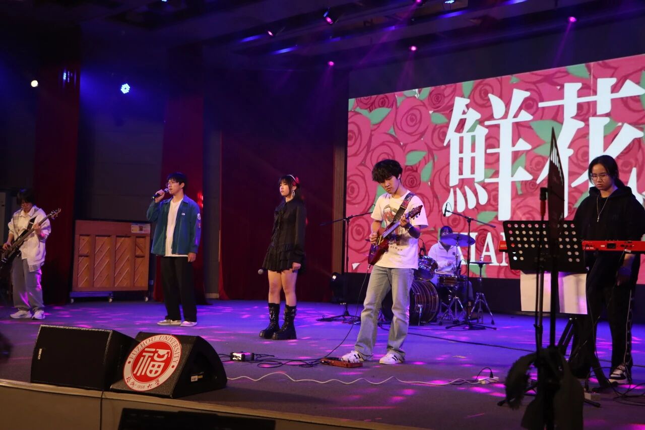 晚会在乐队表演《鲜花》中拉开序幕,热血旋律点燃全场热情,掌声与欢呼声此起彼伏。舞蹈《人从众》以灵动舞姿展现青年学子的蓬勃朝气,走秀《锦绣华服》则通过创意编排将学子们的自信风姿与青春气息淋漓尽致展现,更隐隐透出深厚文化底蕴。琵琶独奏《飞花点翠》古韵悠扬,将传统器乐之美娓娓道来。舞蹈《生息》以细腻的肢体语言传递生命力量,为后续颁奖环节埋下温情伏笔。
