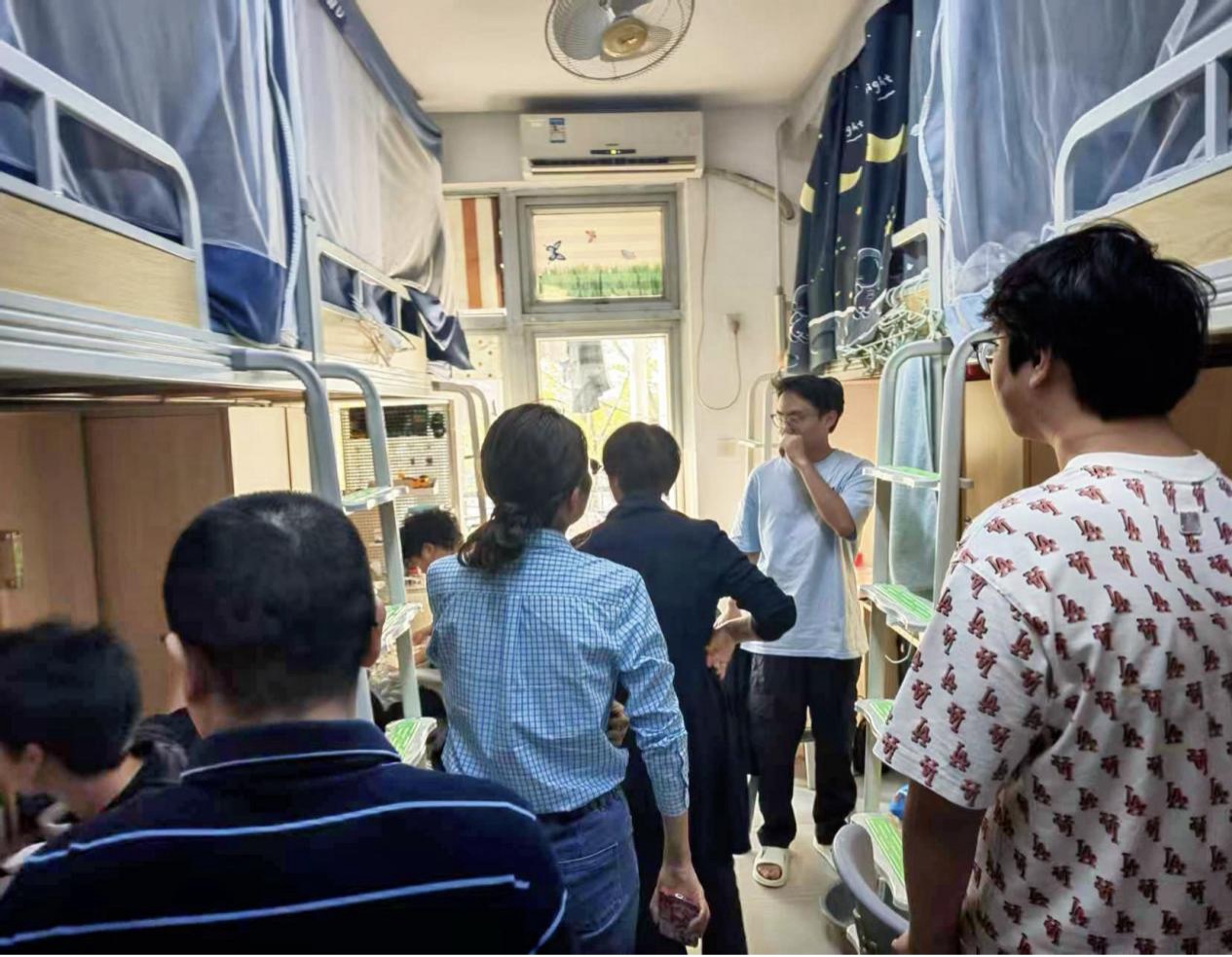 “最近学习压力大不大?”“生活上有没有什么困难?”……走进一间间宿舍,学院领导与同学们亲切交谈,详细询问大家近期的学习状态和生活适应情况。翁穗平书记叮嘱同学们要合理安排作息,注意劳逸结合,遇到问题及时向学院反映;王涛副书记关心同学们的学业规划与未来发展,鼓励大家珍惜大学时光,打牢专业基础,同时积极参与校园文化活动,全面提升综合素质。