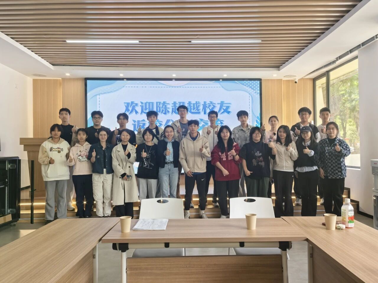 交流中,他回忆起在校期间备战全国赛事的日夜,老师的悉心指导、队友们的并肩作战,还有母校提供的广阔平台,都成为他成长路上的宝贵财富。面对学弟学妹们提出的关于专业学习、职业规划的疑问,他结合自身经历给出真诚建议:“保持对未知的好奇,勇于尝试,母校永远是我们最坚实的后盾。” 现场不时响起阵阵掌声,会议室洒满了秋日温暖的阳光。学长的叮嘱、学弟学妹的提问,交织成一场跨越时光的心灵对话。